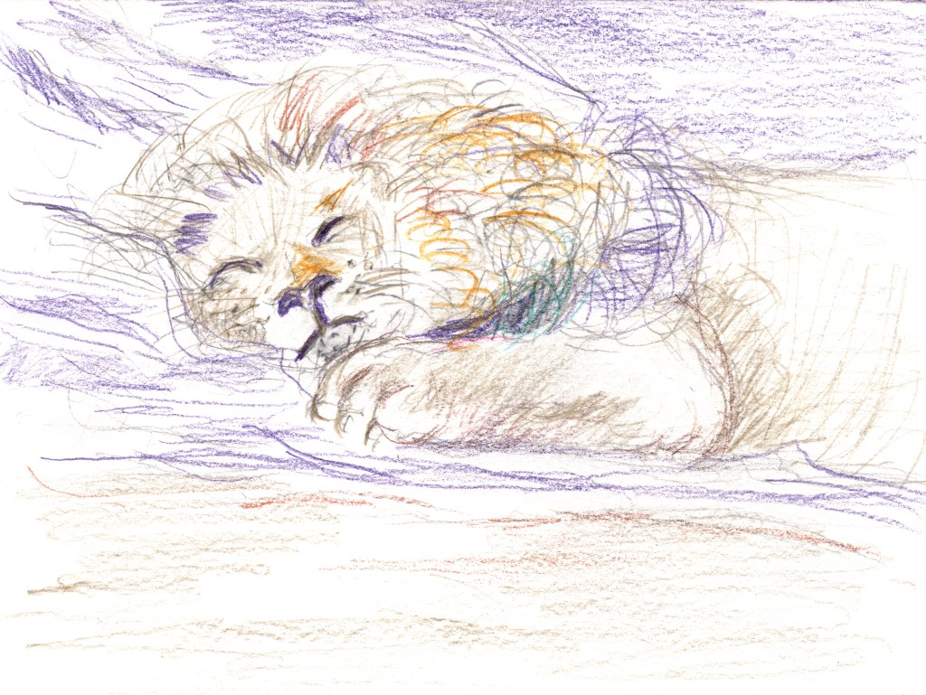We maneuvered the carts toward the lion exhibit. The male lion was asleep on a huge log outside. My husband announced “here is the male lion.” I gave him a look that clearly questioned his intelligence. He asked me “what?” And he stopped his cart. I was following behind him and my cart hit his cart. My cart had been in a series of zoo path accidents and this was just one too many. My husband’s cart went forward on the path. Mine did not. I got out of the cart and began to walk the path toward my husband. The lion woke up and looked at me as I looked at him. I was in no mood for male dominance. The lion averted my gaze and went back to sleep. He was not concerned. He had a fence.